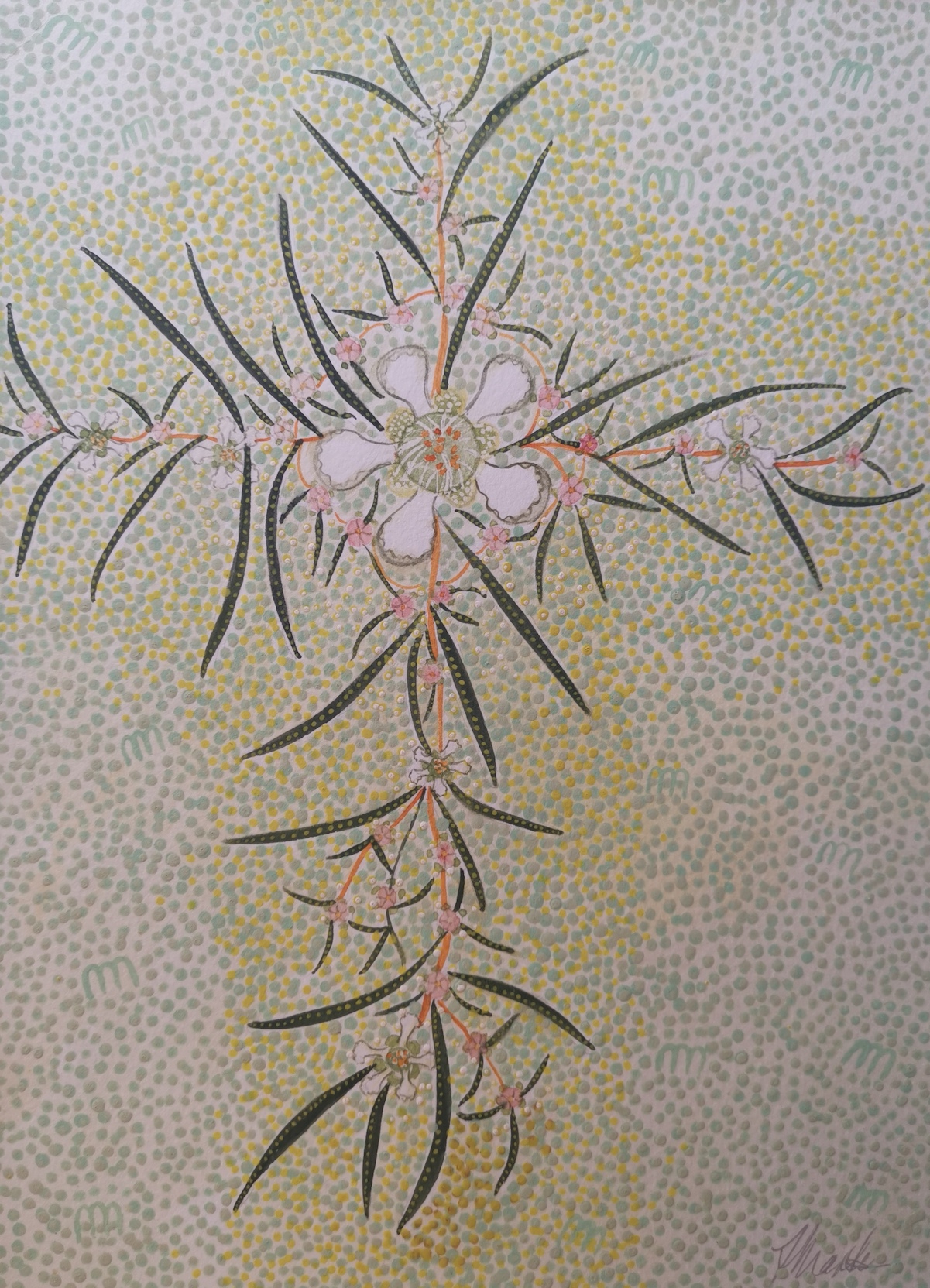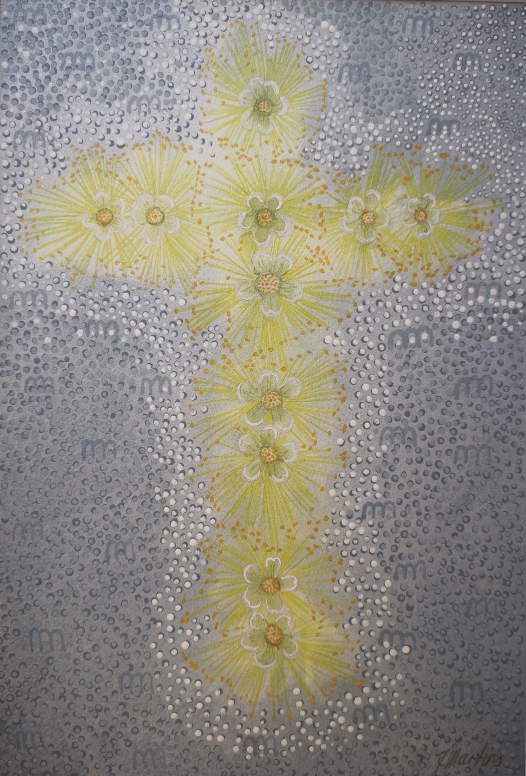 Expressing the seasonal changes of the coastal bush on the Awabakal Country, Lake Macquarie, NSW. These paintings celebrate God’s creations in the shape of the cross.